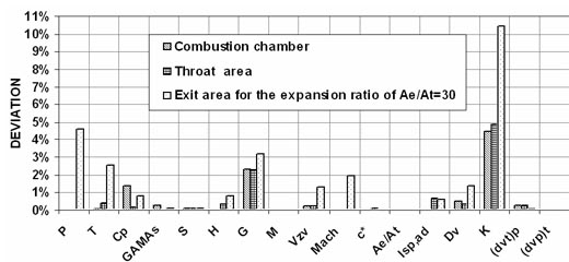 - Applied algorithm enables calculation of theoretical performances for composite and double-base rocket propellants for frozen and equilibrium expansion.